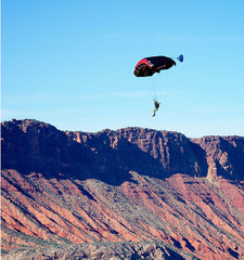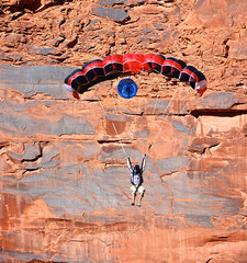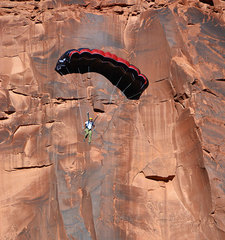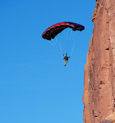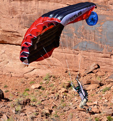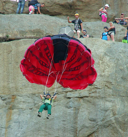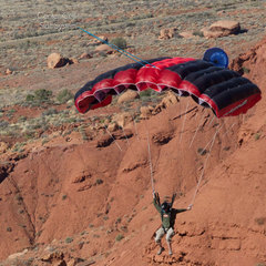Хорошо известная модель BASE-парашюта от Squirrel, которая может служить универсальным куполом для любых прыжков, но обеспечивать небольшие бонусы при прыжках с небольшой задержкой и на сложные площадки. То есть, да, он больше для техно-бэйса. Хотя если вы любите поточнить на полянку между высоких ёлок, он и в горах пригодится.