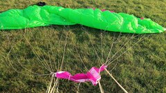 Основной парашют Safire-3 150. Дата изготовления 03.2024. Основной цвет зелёный. Лоб и слайдер розовые. Универсальный купол для любого уровня подготовки после AFF. Одна из лучших моделей в этом классе. Отдельно - 250000р.