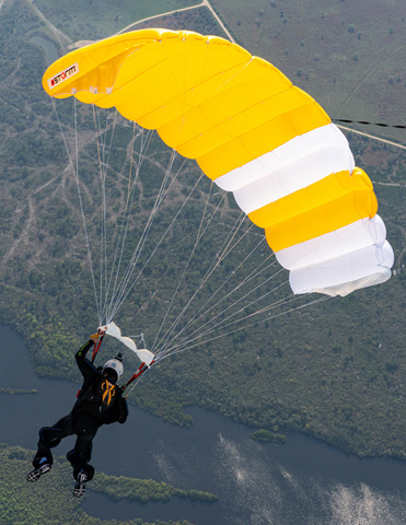 Универсальный купол во всех смыслах. 7 секций. Стабильно и мягко открывается, хорошо и интересно летает для семисекционника, прощает больше ошибок при небольших загрузках. Хорошо сочетается с вингсьютом. Для купольной акробатики есть специальная версия Storm CF. Но и "обычная" версия подойдёт для этой дисциплины лучше других куполов. Если вам ещё далеко до пенсии, и PD Spectre для вас не подходит по возрасту, но всё же хочется от парашюта стабильности и простоты в управлении, этот купол для вас.